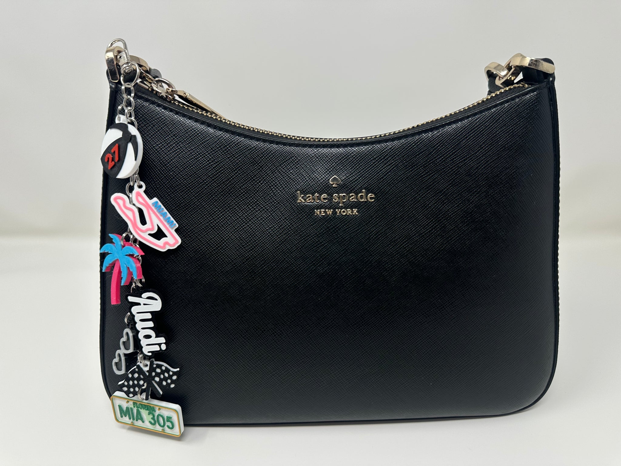 Bring the heat of Miami race weekend wherever you go. The bag charms contains 7 3D printed charms. These bag charms/key chains are designed and assembled by me. This product is inspired by racing teams and motorsport culture, but is not affiliated with or endorsed by any official racing team or drivers.