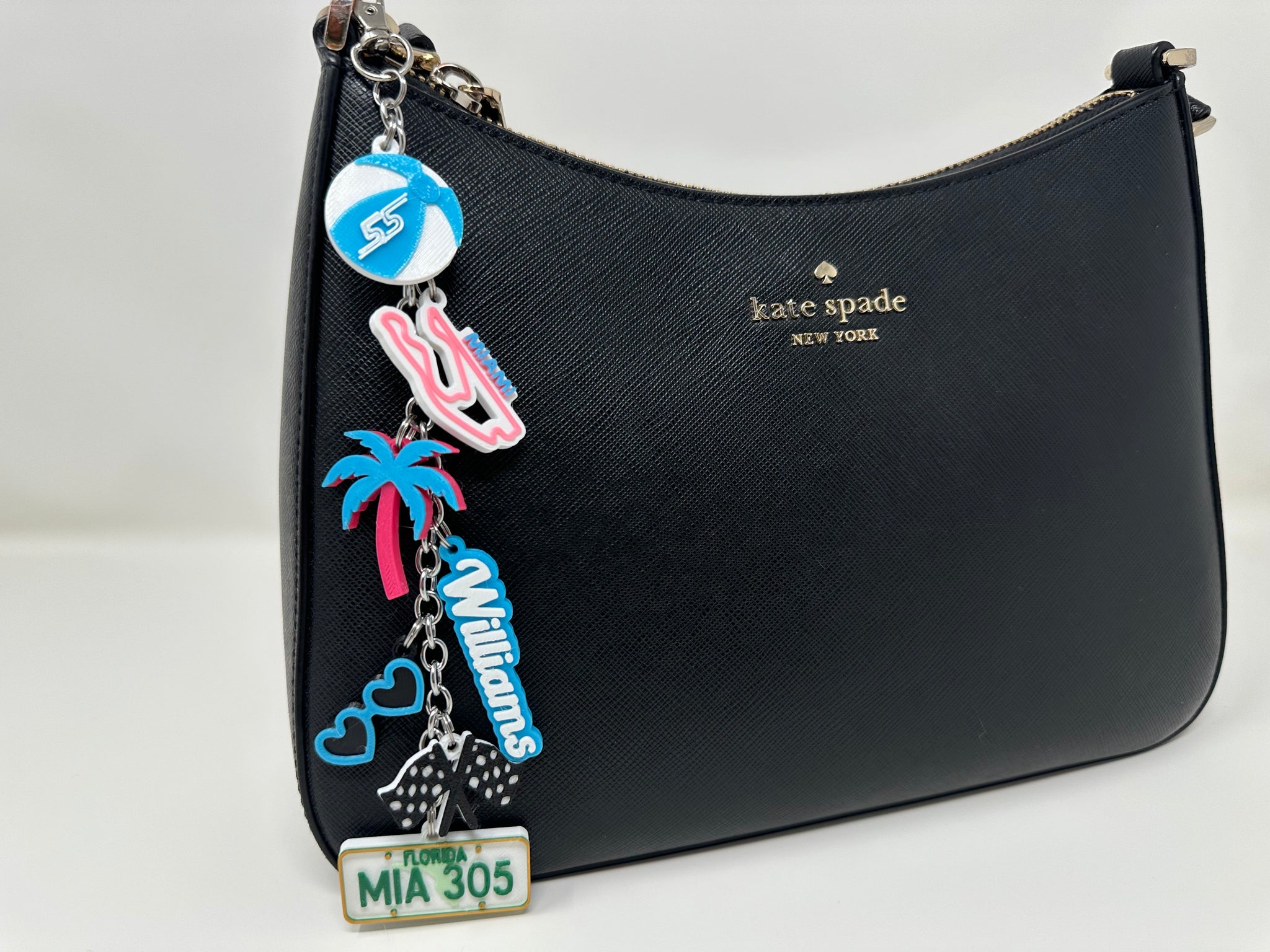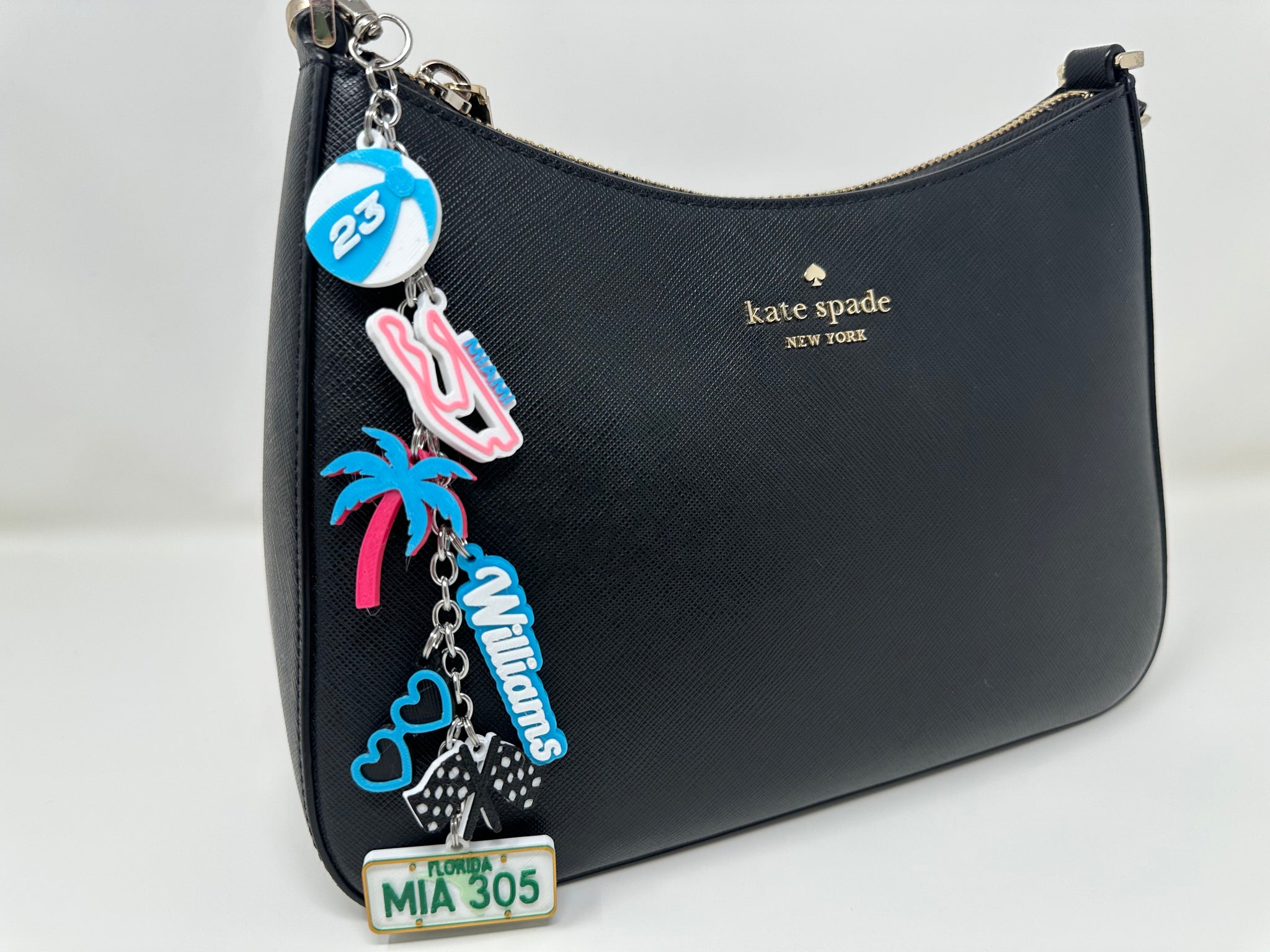 Bring the heat of Miami race weekend wherever you go. The bag charms contains 7 3D printed charms. These bag charms/key chains are designed and assembled by me. This product is inspired by racing teams and motorsport culture, but is not affiliated with or endorsed by any official racing team or drivers.