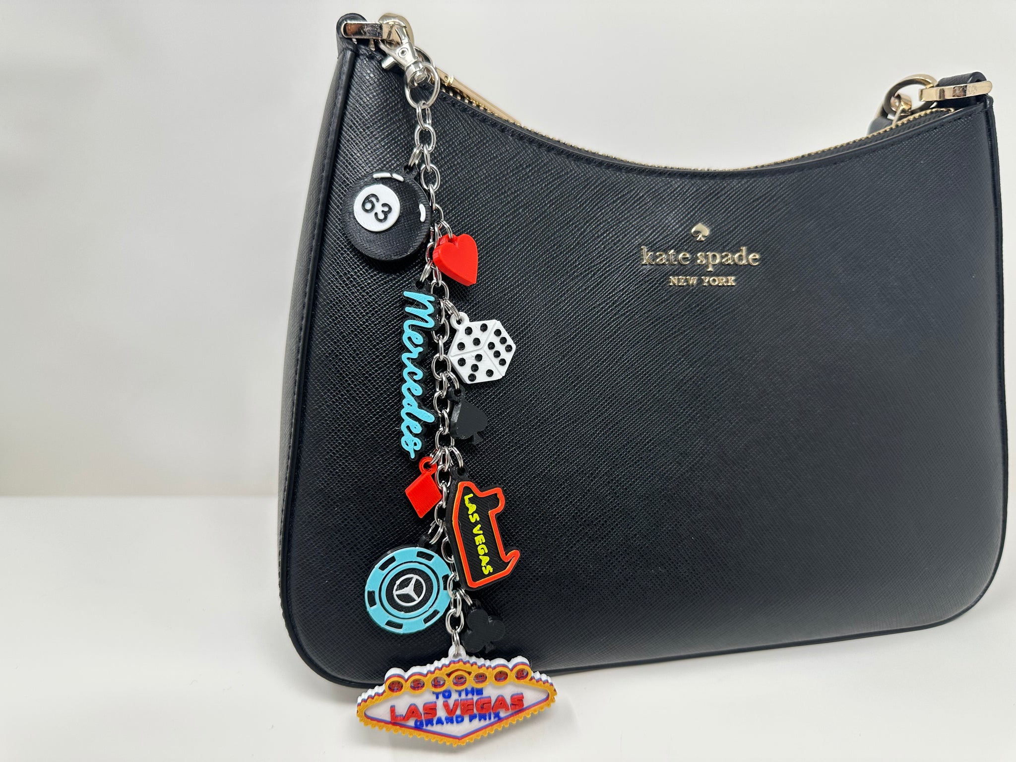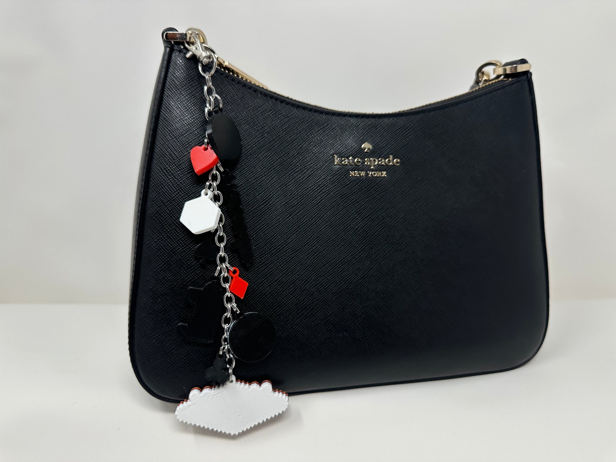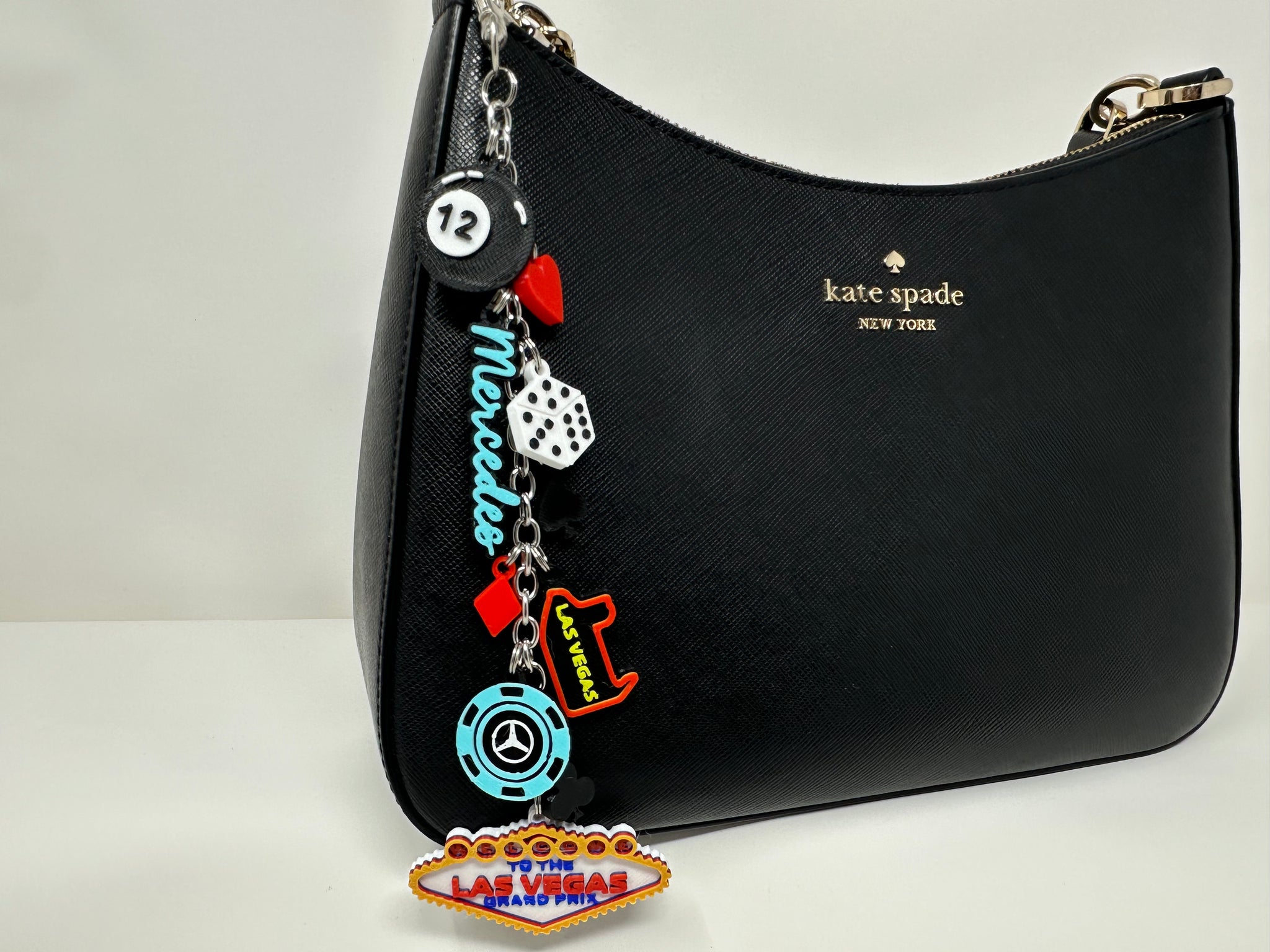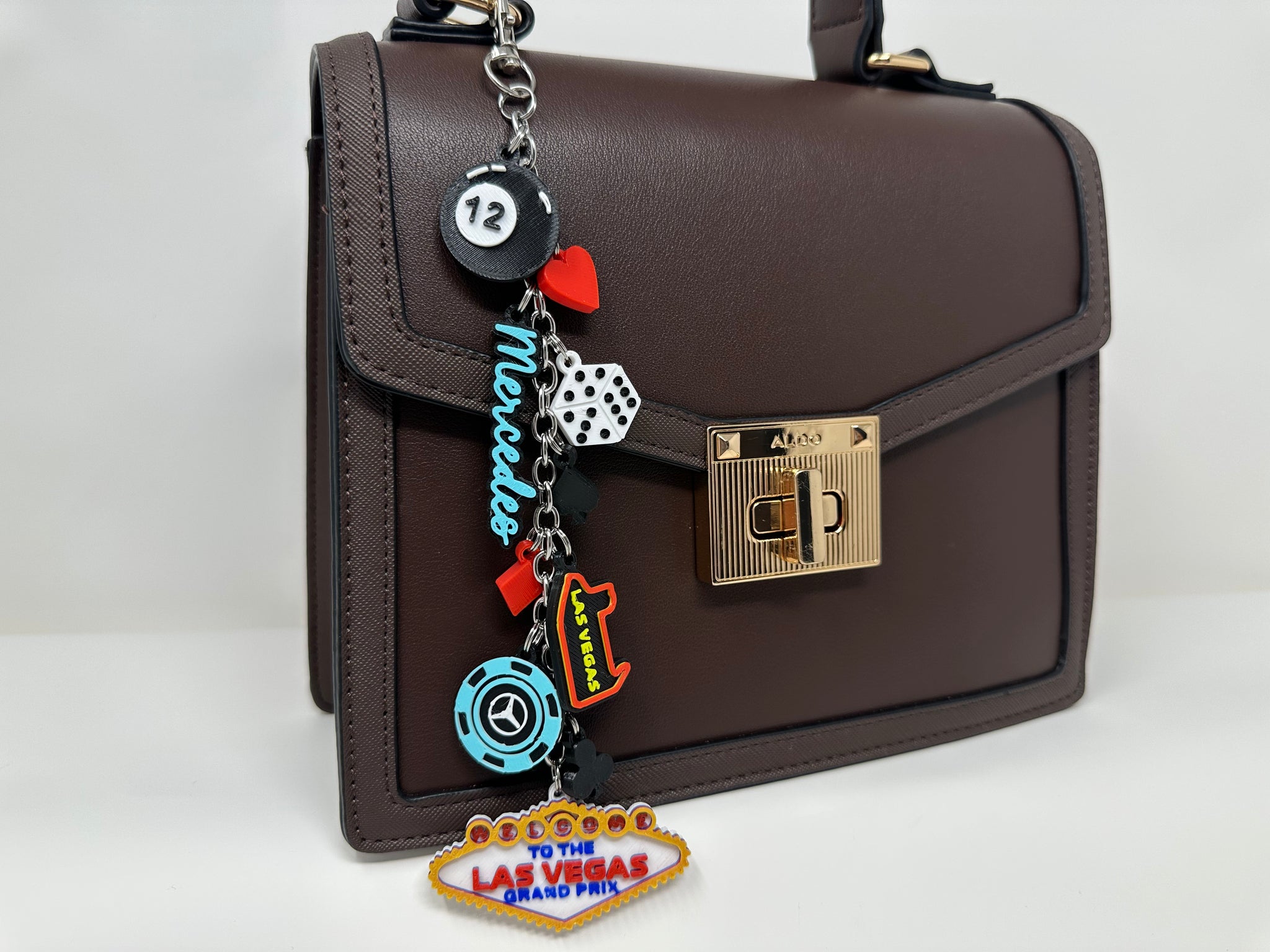 Inspired by the electric energy of Las Vegas nights, this collection celebrates speed, light, and luxury. The bag charms contains 10 3D printed charms. These bag charms/key chains are designed and assembled by me. This product is inspired by racing teams and motorsport culture, but is not affiliated with or endorsed by any official racing team or drivers.